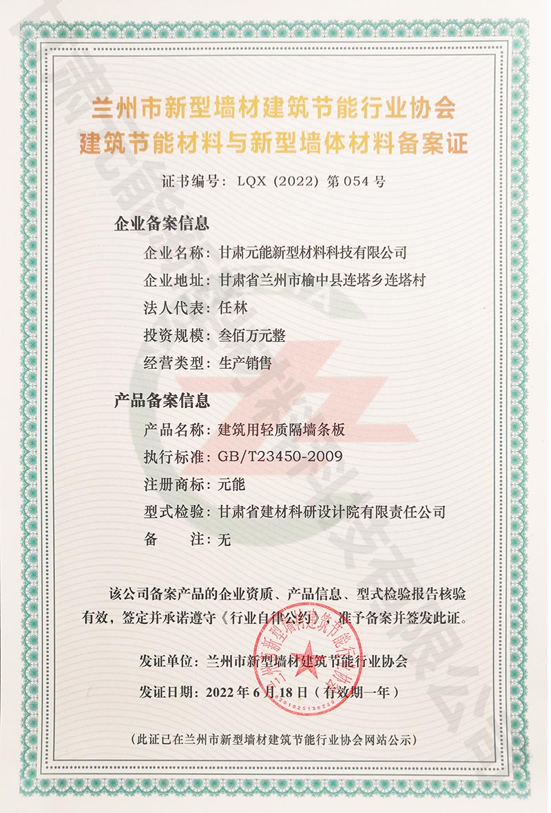 蘭州市新型墻材建筑節(jié)能行業(yè)協(xié)會建筑節(jié)能材料與新型墻體材料備案證